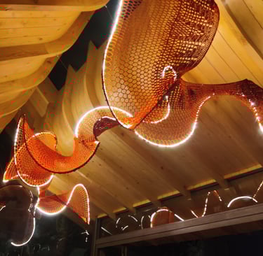 We’ve seen this fusion in installations that evoke emotion but also serve functional or spatial purposes. We see it in retail environments, hospitality spaces, and even in residential settings, where a sculptural light or a handwoven wall can both elevate the aesthetic and anchor the space experientially.