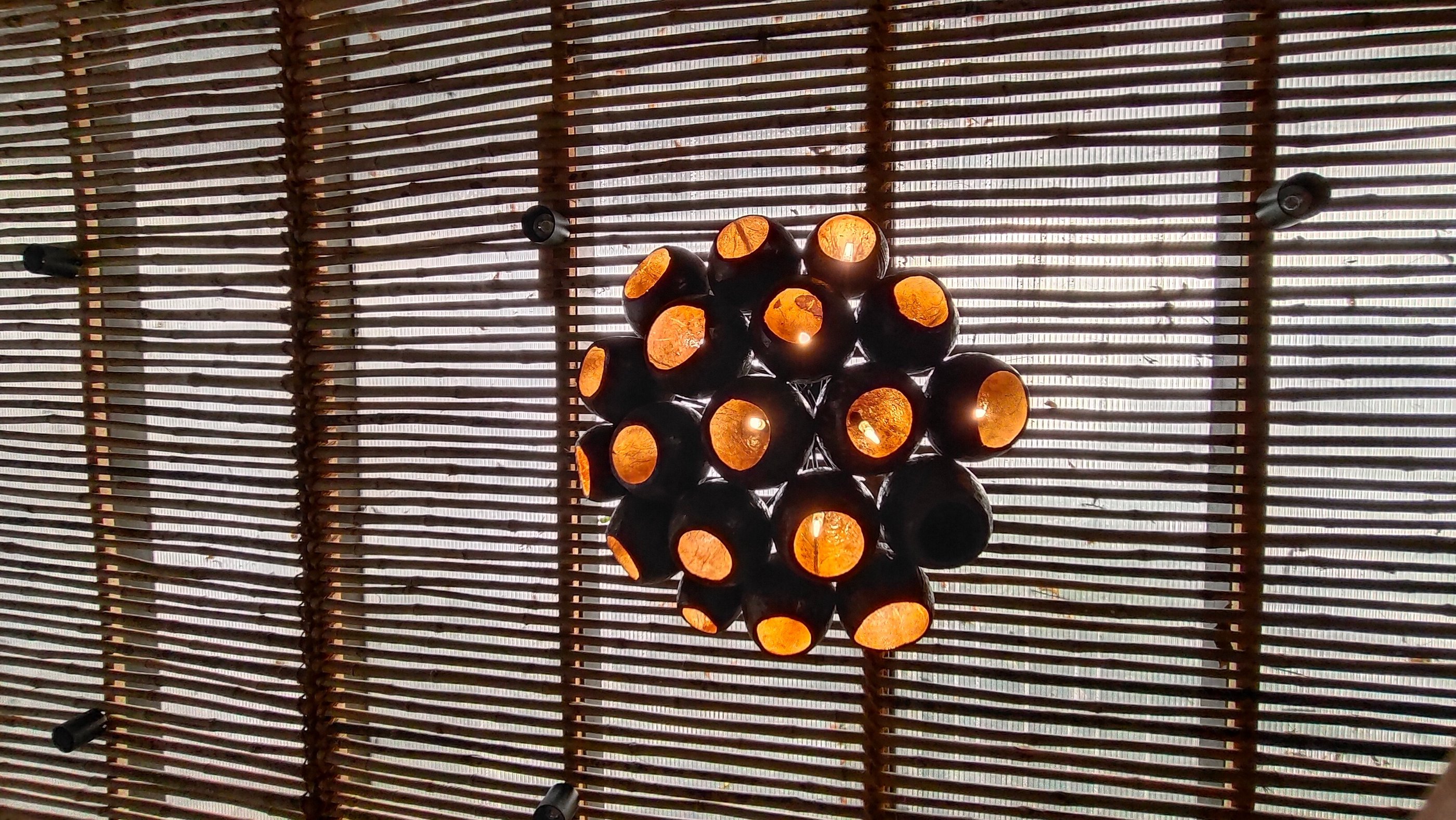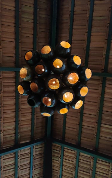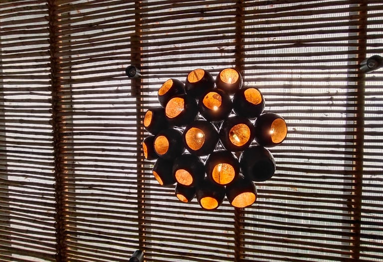 This project for Yumma Swami, a South Indian restaurant designed by Mind Manifestation Studio, became an exploration of material and cultural memory. We reimagined the humble coconut shell, an abundant yet often discarded resource, into handcrafted lamps that celebrate its raw beauty. Each piece is carefully cut and composed to reveal its organic texture and warmth. When illuminated, the shells cast a soft, ambient glow, echoing the earthy essence of South Indian spaces. The process was intuitive and experimental, allowing the material to guide the form. These lamps embody transformation turning a familiar, everyday material into a tactile, luminous experience within the space