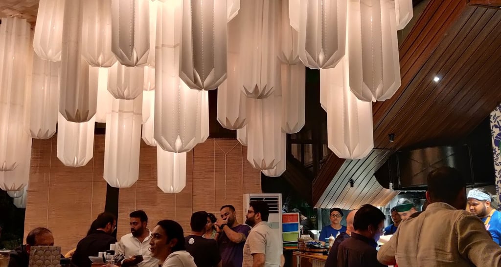 Take, for instance, The Jewel of Nizam, an ethereal installation inspired by the grandeur of Hyderabad’s royal heritage. Suspended above diners, its intricate, light-infused structure evokes the brilliance of regal jewelry, enveloping the space in opulence.