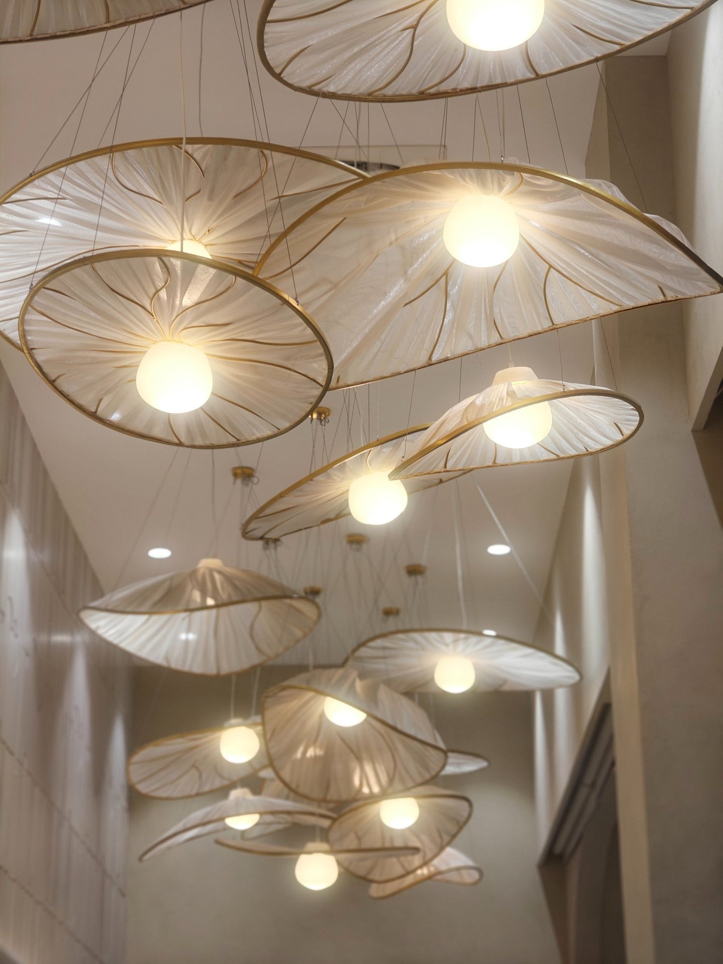 As viewers move around the piece, shifting perspectives reveal a dynamic interplay of opacity and translucency—light filtering through the fabric mimics the ephemeral beauty of sunlight streaming through forest canopies. The installation is a meditation on fragility, impermanence, and the elegance found in the simplest natural forms, inviting viewers to pause and immerse themselves in its quiet luminescence.