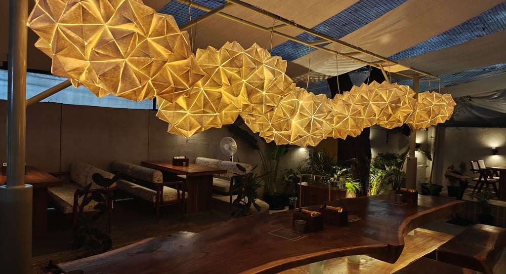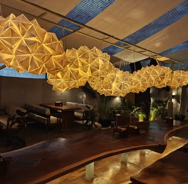 Material selection plays a critical role in the installation’s longevity and impact. Piyusha rigorously tests finishes, lighting conditions, and durability, especially for high-end hospitality spaces that require both aesthetics and resilience. Whether it’s a delicate hand-crocheted form or an intricately folded origami-inspired structure, every detail is considered before the final execution.